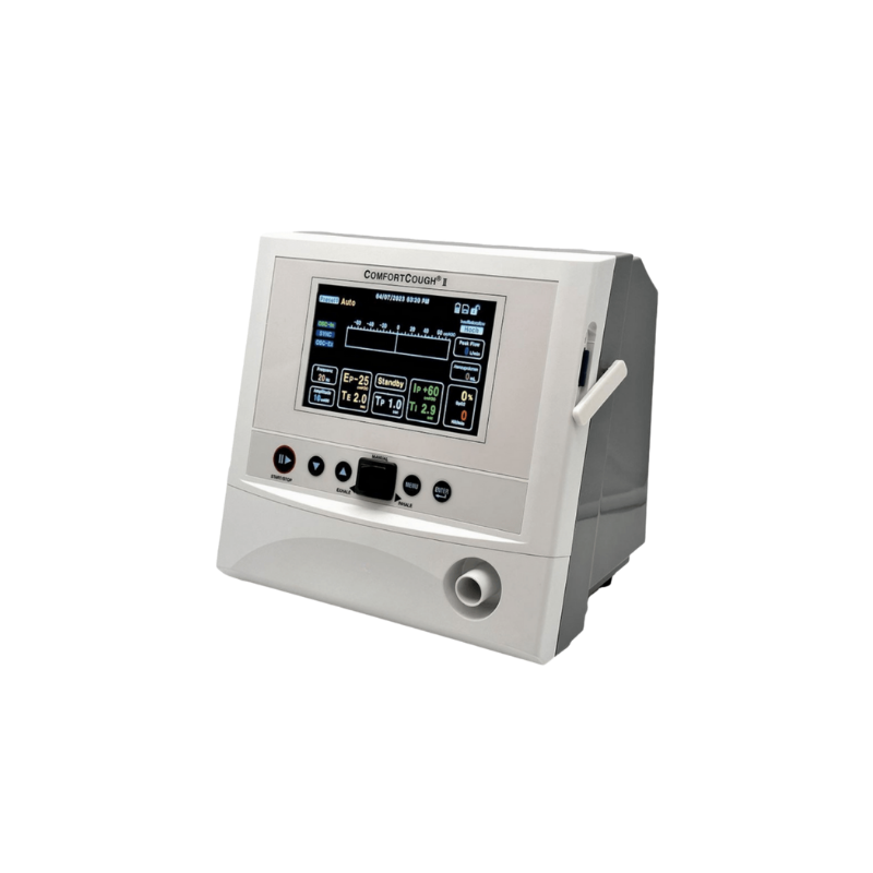 Comfort Cough II, sekresyon temizliğini kolaylaştırmak için tasarlanmış, invaziv ve non-invaziv kullanım destekli gelişmiş bir öksürtme (MI-E) cihazıdır.